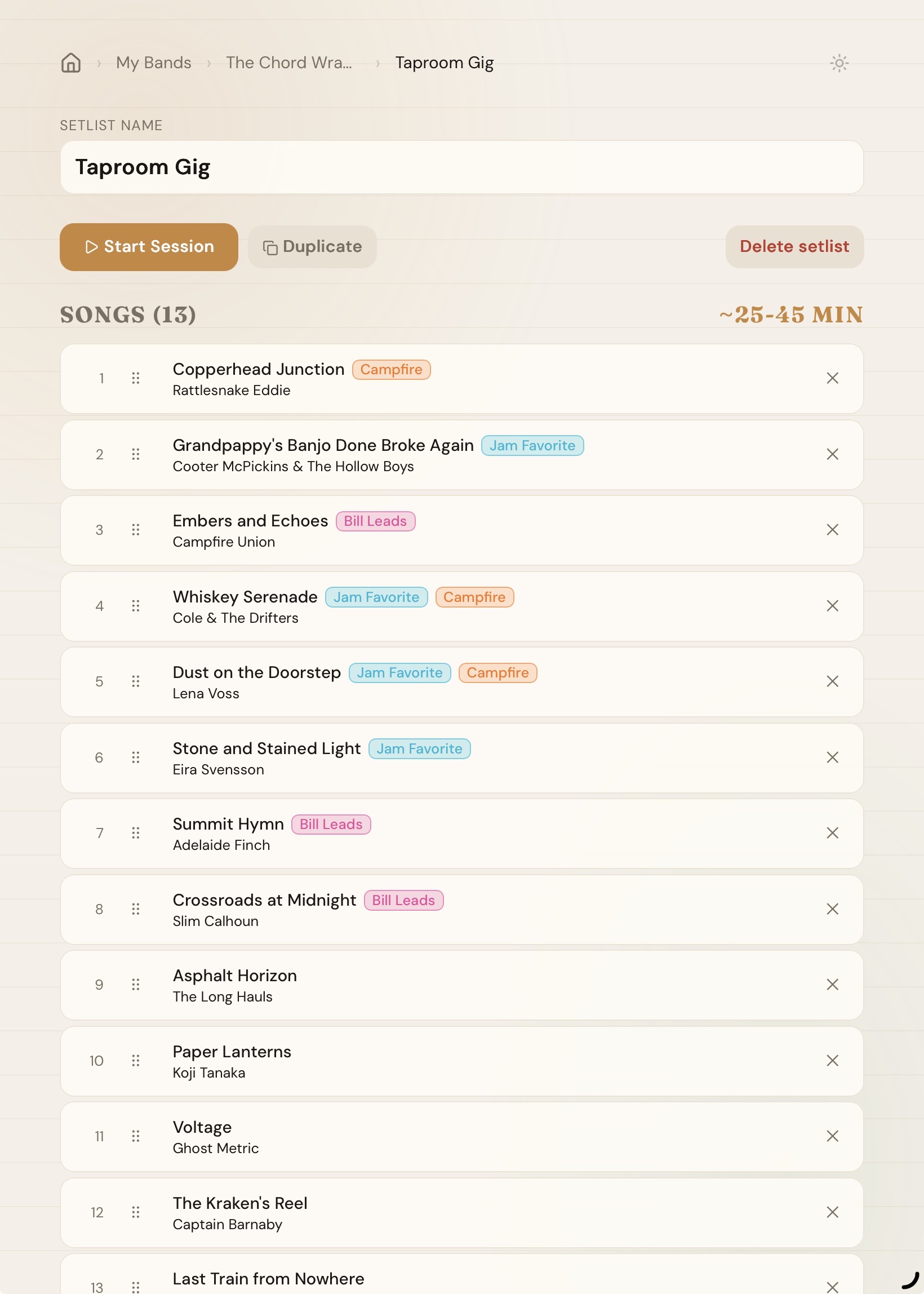 Paste a chord chart or drop a songbook PDF. We split it into individual songs.
